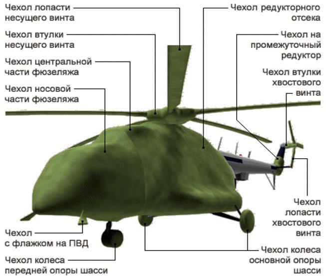 Внутренняя сторона чехла выполнена из мягкого, ворсистого материала. Флис плотно прилегает к остеклению вертолета, не оставляя следов на поверхности стекла. Между внешним и внутренним покрытием находится специальный утеплитель, который сохраняет оптимальную температуру внутри кабины.