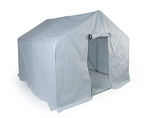 Высота стенки 130 см, ширина 250 см, длина ската крыши 140 см, высота до конька 195 см + юбка 15 см.