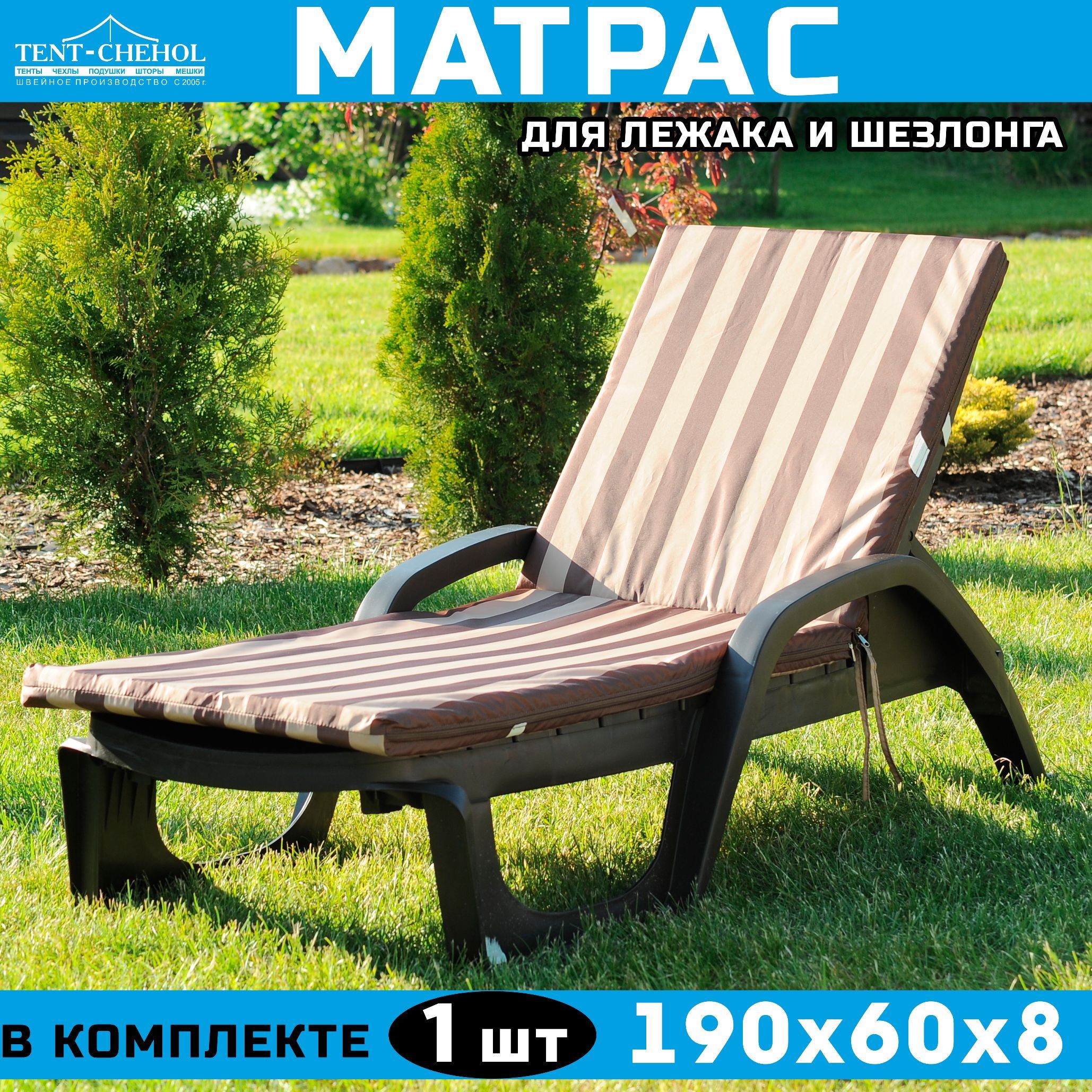 Краткое описание «Матрас для шезлонга и лежака 190х60х8 (бежево-коричневый)»