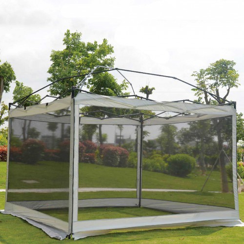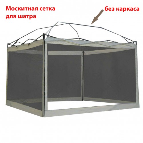 Это сетки для шатра, устанавливаемого на улице. Длина этих стенок составляет 1,9 метра, а ширина составляет 3 м. Изготовлены такие сетки из качественной ткани, имеющей покрытие. У них бежево-серый цвет. Это сетка, которая сможет защитить от комаров, а также частично от солнца. У сетки есть две молнии, предназначенные для входа. Это очень надежная и качественная ткань, имеющая специальное покрытие, может предотвратить попадание прямых солнечных лучей в беседку. Для палатки отводится огромное пространство, которое может вместить несколько человек. Благодаря сетке шатер хорошо защищает от внешних воздействий. Это прозрачная ткань, которая при этом защищает от солнца. Прикрепляется она к каркасу при помощи специальных крючков.