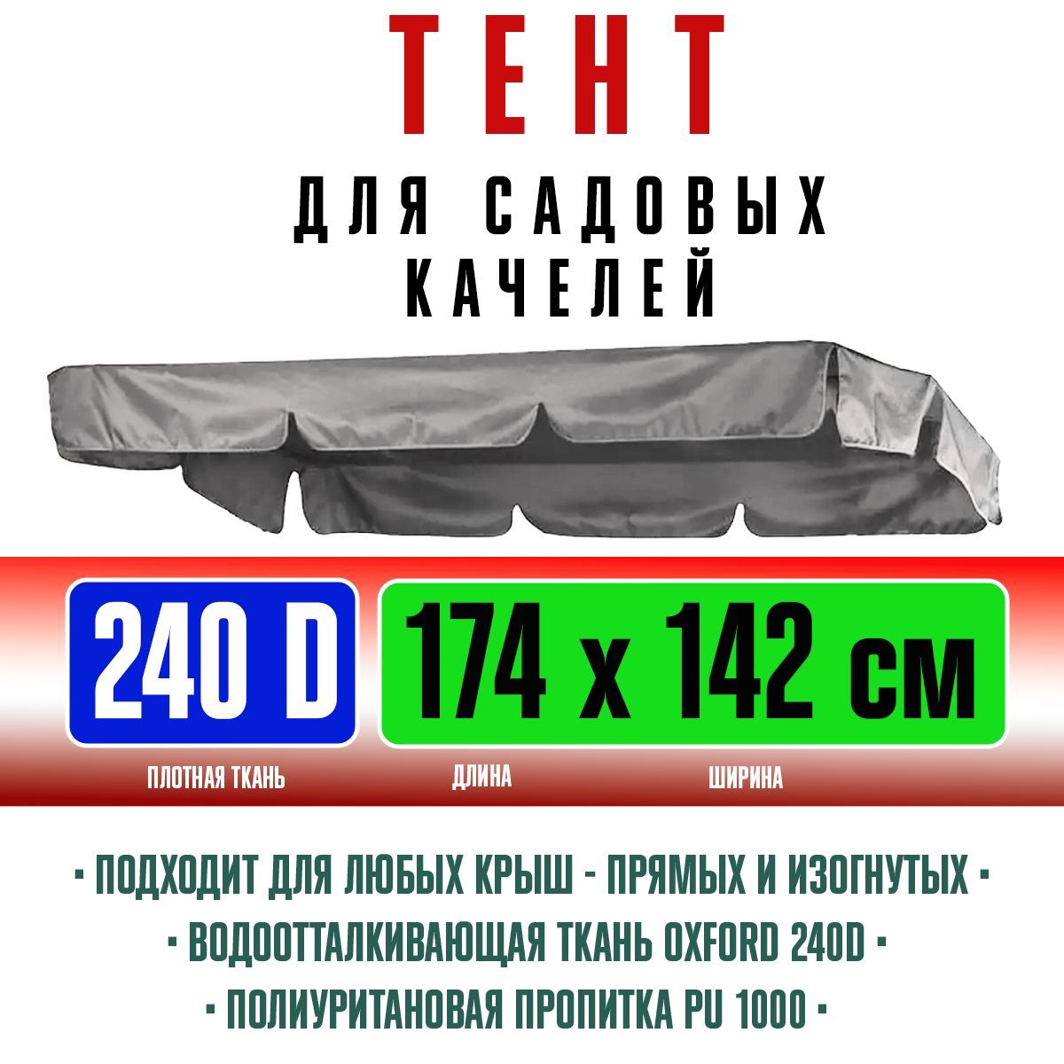 Тент для садовых качелей, серый, 174х142см