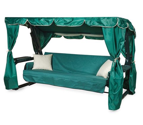 Тенты и шторы, предназначенные для садовых качелей способны очень хорошо защитить от осадков и прямых солнечных лучей. Это очень важно, так как краска на металлических частях